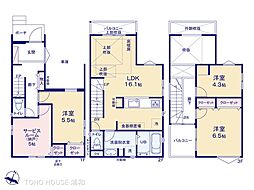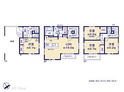 | 間取り | 4LDK 間取り内訳:洋室 6.1帖・リビングダイニングキッチン 16帖・洋室 5.2帖・洋室 5.2帖・洋室 5.7帖 |
