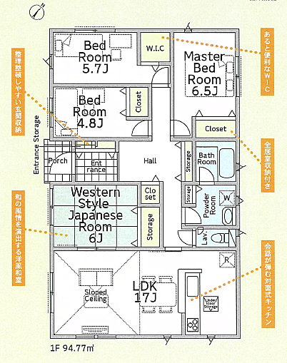 | 間取り | 4LDK 間取り内訳:リビングダイニングキッチン 17帖(1階)・和室 6畳(1階)・洋室 6.5帖(1階)・洋室 5.7帖(1階)・洋室 4.8帖(1階) |