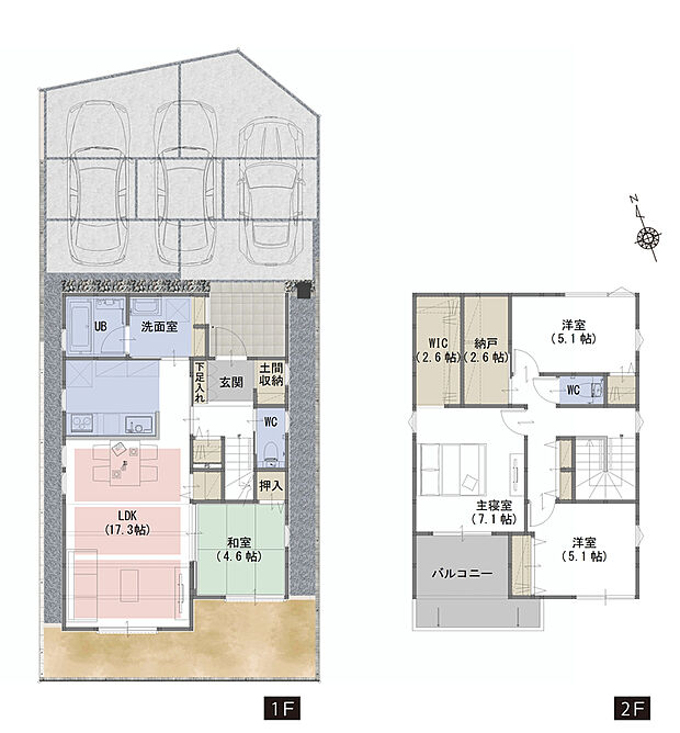 | 土地面積 | 113.43m2~147.43m2(セットバック含む) | ||