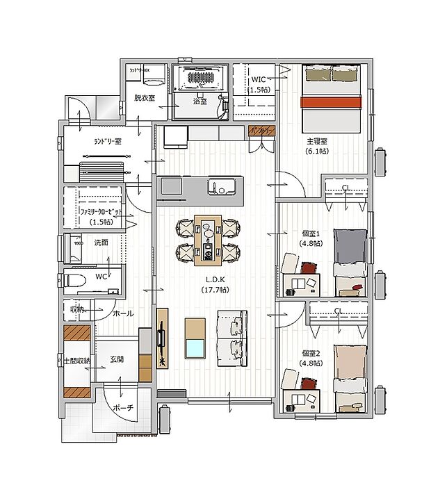 | 間取り | 3LDK+WIC+LR++PT+SIC(2号地)、3LDK+WIC+LR++PT+SIC(3号地) |