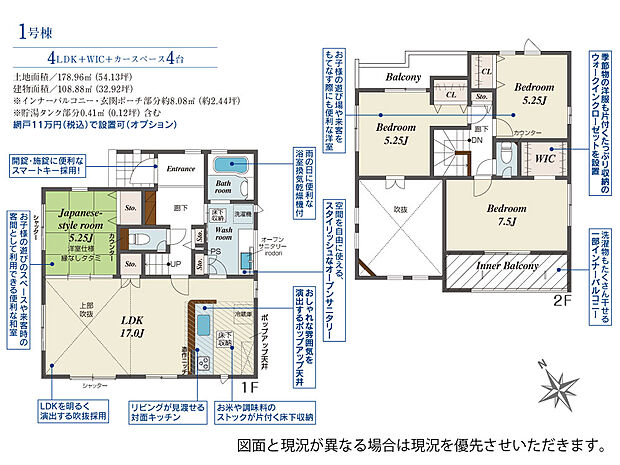 ◆お子様の遊び場のスペースや来客時に便利な和室♪LDKを明るく演出する吹抜け♪雨の日に洗濯物も干せる浴室乾燥機付き!急な雨でも安心!インナーバルコニー◎たっぷり収納できるウォークインクローゼット付き♪