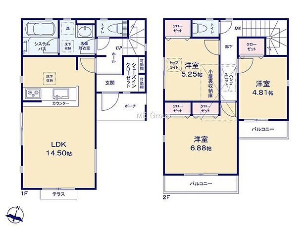 暮らしと住まいにPLUSの提案を−エムイーPLUS横浜−南道路につき日当たり良好です 暮らしを彩る充実した設備仕様が備わった新築戸建 シューズインクローゼット完備 大型浴室TV付