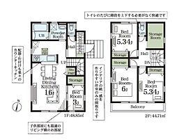 角地立地です。全室2面採光、バルコニーです。全居室フローリングです。全居室収納、床下収納、納戸付でスッキリ暮らせます。カウンターキッチンで使いやすいです。LDK15畳以上。照明器具付きです。