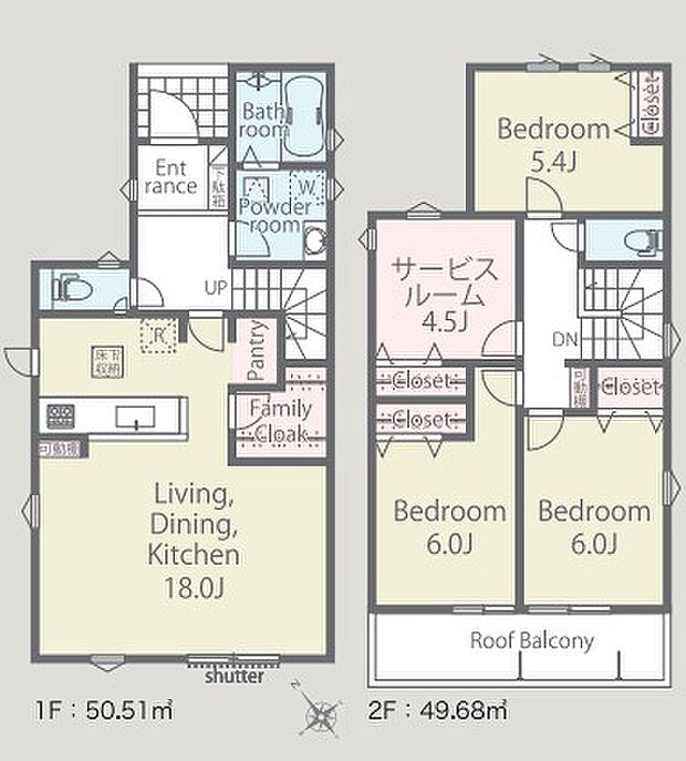 間取り内訳:リビングダイニングキッチン(1階)・洋室(2階)・洋室(2階)x2・洋室(2階)・洋室