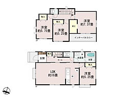 | 間取り | 4SLDK 間取り内訳:洋室 5.5帖(1階)・リビングダイニングキッチン 16帖(1階)・洋室 4.5帖(2階)・洋室 6.5帖(2階)・洋室 8帖(2階)・収納 2帖(2階) |