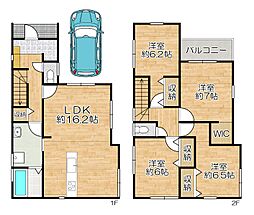 間取り内訳:リビングダイニングキッチン 21.4帖(1階)・洋室 8帖(2階)・洋室 5.6帖(2階)・洋室 5.5帖(2階)・収納 3.4帖(2階)