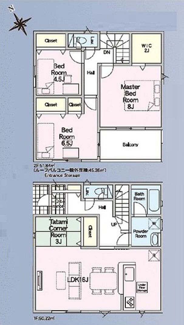 | 間取り | 4LDK 間取り内訳:リビングダイニングキッチン 16帖(1階)・和室 3畳(1階)・洋室 4.5帖(2階)・洋室 6.5帖(2階)・洋室 8帖(2階) |