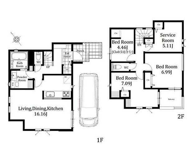 | 間取り | 3SLDK 間取り内訳:リビングダイニングキッチン 16.1帖(1階)・洋室 4.4帖(2階)・洋室 7帖(2階)・洋室 6.9帖(2階)・収納 5.1帖(2階) |