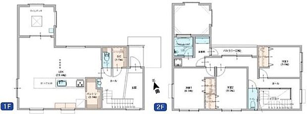 | 間取り | 3LDK 間取り内訳:リビングダイニングキッチン 23.4帖(1階)・洋室 6.5帖(2階)・洋室 6帖(2階)・洋室 5帖(2階) |