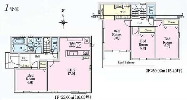 | 間取り | 4LDK 間取り内訳:リビングダイニングキッチン 17帖(1階)・洋室 6帖(1階)・洋室 9帖(2階)・洋室 6.7帖(2階)・洋室 5.2帖(2階) |