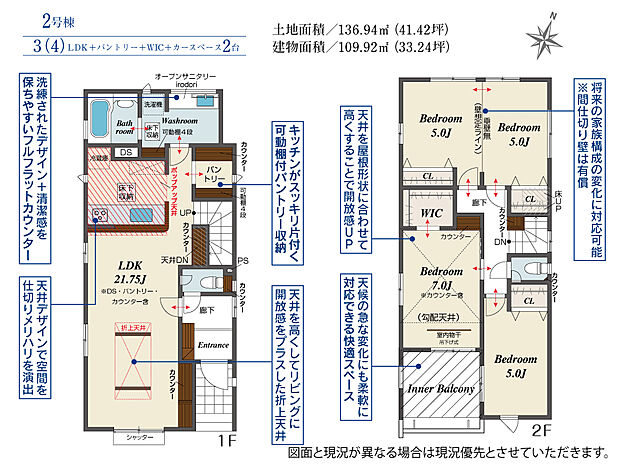 117.40m2(約35.51坪)~136.94m2(約41.42坪) |