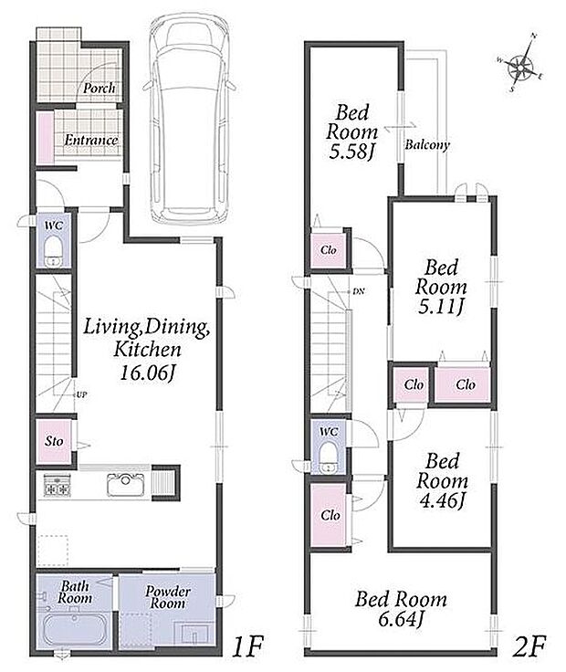 バスルームには浴室乾燥機採用。全居室収納付きの2階建て新邸です。