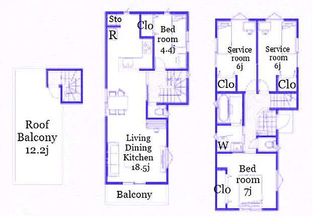 間取り 2LDK+2S(納戸) 建物階 木造2階建