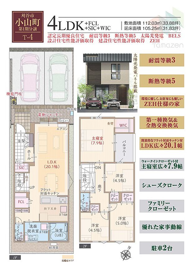 | 建物面積 | 103.79m2(T4棟)~105.25m2(T5棟) | ||