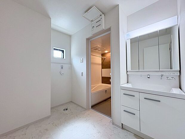 リビング20帖、勾配天井と吹抜けのある開放的な空間設計。床暖房や食器洗浄乾燥機、浴室暖房乾燥機など設備も充実してます。