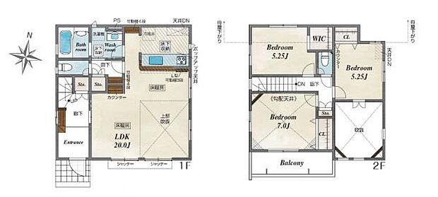 駐車スペース2台可(車種による)!20帖の広々としたLDK。各居室収納スペース付きで広々住空間!