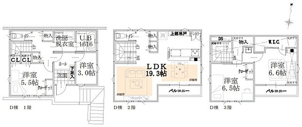 | 間取り | 4LDK 間取り内訳:洋室 3帖・リビングダイニングキッチン 19.3帖・洋室 6.6帖・洋室 6.5帖・洋室 5.5帖 |