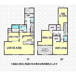 | 間取り | 4LDK 間取り内訳:リビングダイニングキッチン 18.4帖(1階)・洋室 3.7帖(1階)・洋室 7.2帖(2階)・洋室 6.5帖(2階)・洋室 6.1帖(2階) |