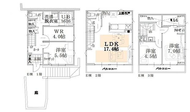 | 間取り | 3SLDK 間取り内訳:リビングダイニングキッチン 17.4帖・洋室 7帖・洋室 5.5帖・洋室 4.5帖・収納 4帖 |