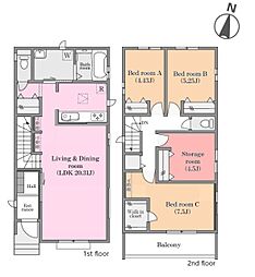 | 間取り | 4LDK 間取り内訳:リビングダイニングキッチン 16.1帖(1階)・洋室 4.3帖(1階)・洋室 7.7帖(2階)・洋室 6帖(2階)・洋室 5.2帖(2階) |