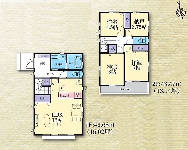 | 間取り | 3SLDK 間取り内訳:リビングダイニングキッチン 18帖(1階) |