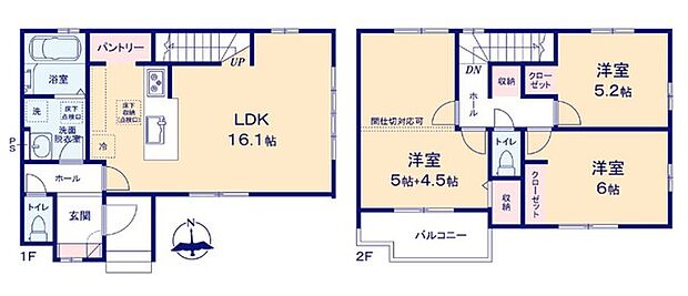 | 間取り | 3LDK 間取り内訳:リビングダイニングキッチン 16.1帖・洋室 9.5帖・洋室 6帖・洋室 5.2帖 |