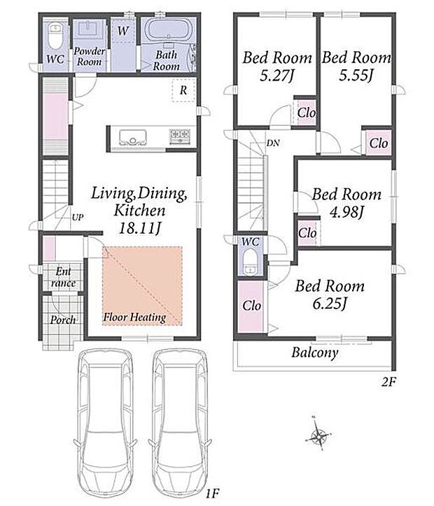 南北両面道路!1階に設けたLDKは広々18畳超。並列2台駐車可能です。