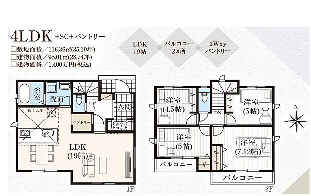 | 間取り | 4LDK+SC+パントリー・4LDK+2WIC+SC+パントリー |