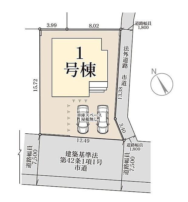 『接道』角地 南西7.5m公道 南東1.8m公道