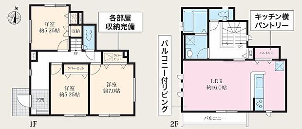 間取り内訳:リビングダイニングキッチン 16帖(2階)