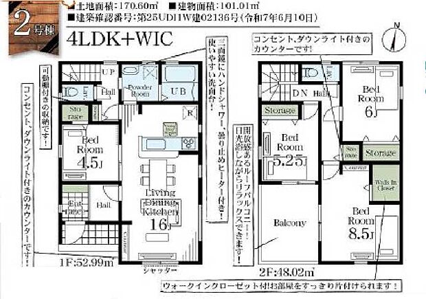 | 間取り | 4LDK 間取り内訳:リビングダイニングキッチン 16帖(1階)・洋室 4.5帖(1階)・洋室 6帖(2階)・洋室 8.5帖(2階)・洋室 5.2帖(2階) |
