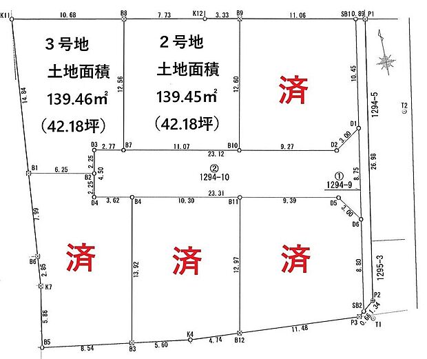 全6区画の開発分譲地!建築条件付売地。残り2区画。土地面積139.45m2〜価格1,350万円〜。建物参考プランあり。