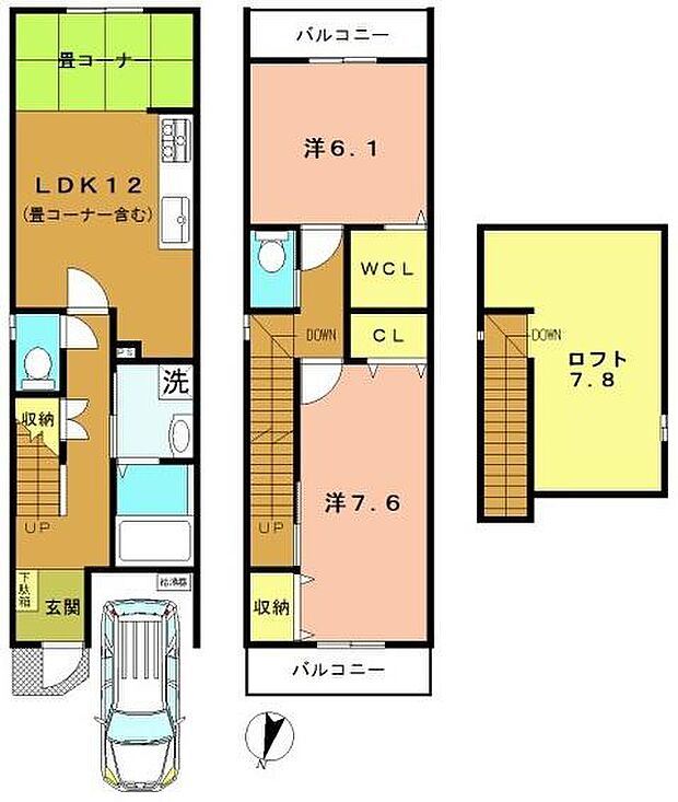 畳コーナーあり 南北両面バルコニー 軽自動車駐車可