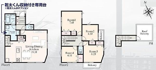 | 間取り | 4LDK 間取り内訳:リビングダイニングキッチン 19.3帖(1階)・洋室 7.4帖(2階)・洋室 4.5帖(2階)・洋室 6.2帖(2階)・洋室 4.5帖(2階) |