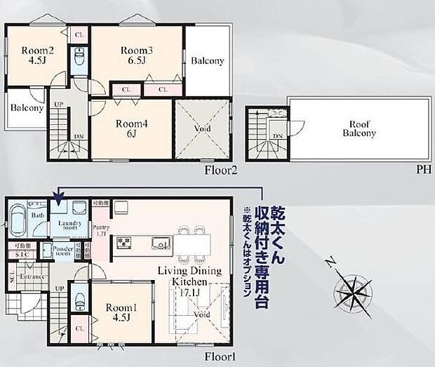 | 間取り | 4LDK 間取り内訳:リビングダイニングキッチン 17.1帖(1階)・洋室 4.5帖(1階)・洋室 4.5帖(2階)・洋室 6.5帖(2階)・洋室 6帖(2階) |