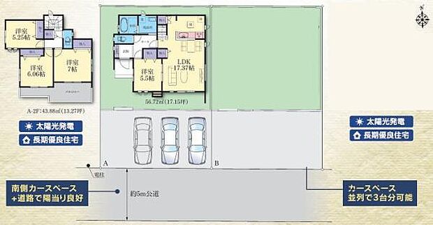 南面道路につき陽当り良好です◎カースペースは広々3台駐車可能!長期優良住宅認定物件♪駅まで徒歩9分◎