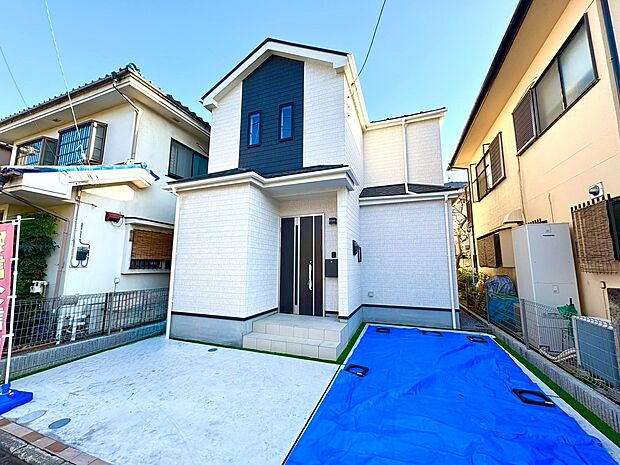 駐車スペース2台可(車種による) 完成済みにつき内覧・即時引渡し可能 ペアガラスサッシ 浄水器一体型システムキッチン フラットフロア シャンプードレッサー 都市ガス