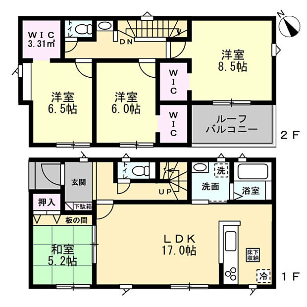 | 間取り | 4LDK 間取り内訳:リビングダイニングキッチン 17帖・和室 5.2畳・洋室 8.5帖・洋室 6.5帖・洋室 6帖 |