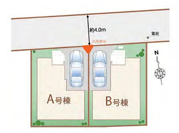 • 北 (私道 幅員 4.00m 接面 -)