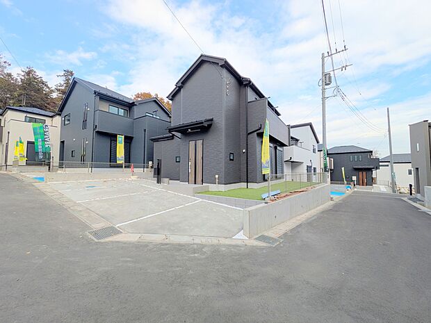 全10棟の分譲住宅。車2台駐車可能です。|開放感があり日当たり良好な南西角地区画。|ご見学できます。