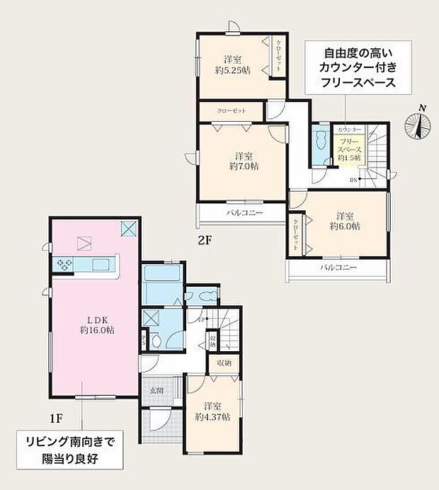 | 間取り | 4SLDK 間取り内訳:リビングダイニングキッチン 16帖(1階) |