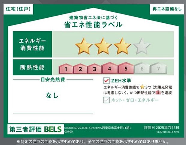 この物件の省エネ性能がわかる「省エネ性能ラベル」です。省エネ性能ラベルは2024年4月以降に建築確認申請した物件などで表示しています。
