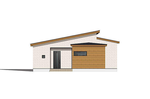 • 【2号地】ウッドデッキがあり、家族との特別なプライベート空間を守る邸宅。/平屋住宅/2号地外観完成予想パース