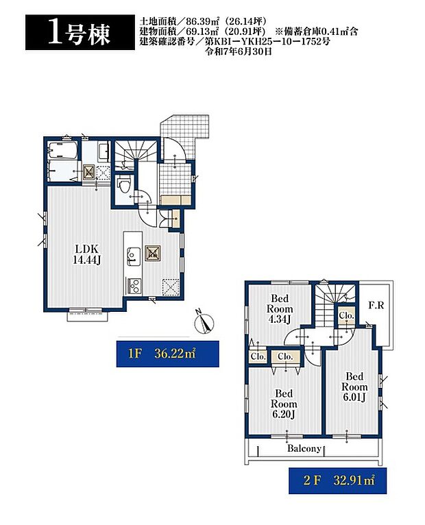 | 建物面積 | 69.13m2(備蓄倉庫0.41m2含む) | ||