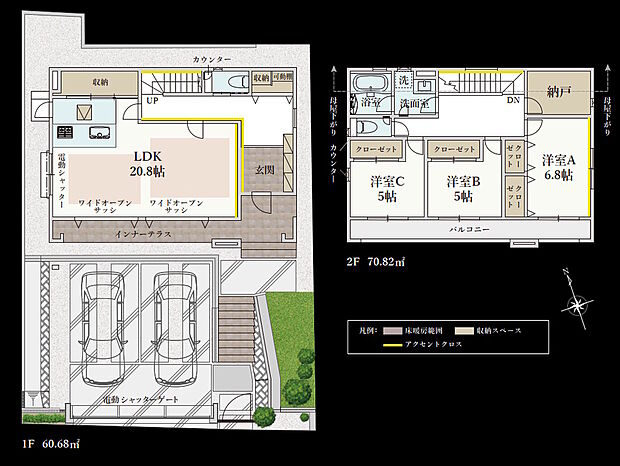 【1】荏田西小学校/市ヶ尾中学校のエリア 【2】ゆとりる広さ!2台駐車可能でゲートシャッター付き! 【3】24時間365日安心のホームセキュリティ