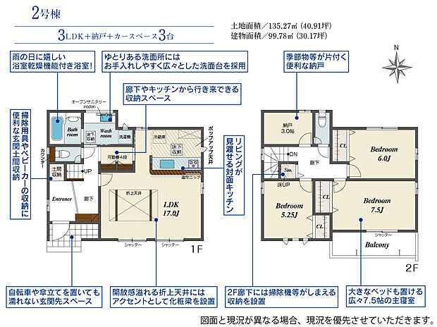 建物面積 99.78m2(約30.18坪)~106.18m2(約32.11坪)