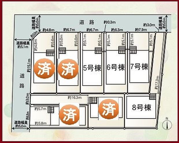 ■人感センサーの玄関灯やカメラなど充実の防犯対策設備です! ■各棟2台の駐車場・5m幅の前道路で出入りもスムーズにできます ■嬉しい仕様・設備がたくさん! 省エネ基準の設備、TVモニター付きインターホン、広々LDK、浴室暖房乾燥機、使い勝手の良いシステムキッチン etc. ■安心・安全のおすみつき! 「設計」「建設」の【住宅性能評価】において耐震・劣化他 4分野で最高等級を全棟取得しています。 住宅ローンや地震保険の優遇も受けられます!