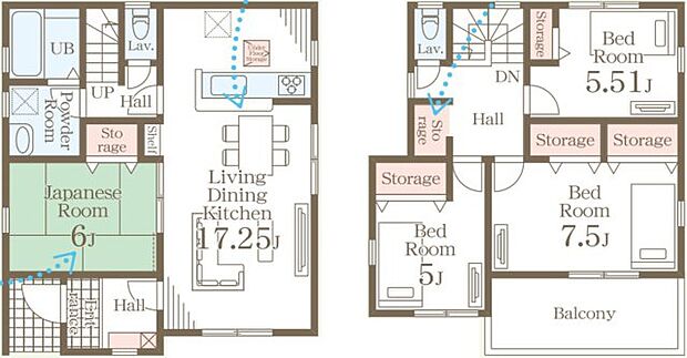 • 「建築条件付き土地」の「建物プラン例」は、土地購入者の設計プランの一例であり、プランの採用可否は任意です。