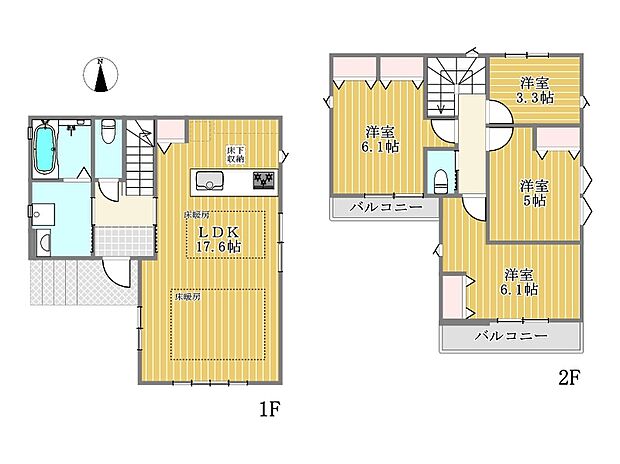 • 【【床暖房】】リビングには床暖房を標準で完備。空気を汚さずに室内を快適な温度に保ちますので、小さなお子様やご年配の方にも安心です