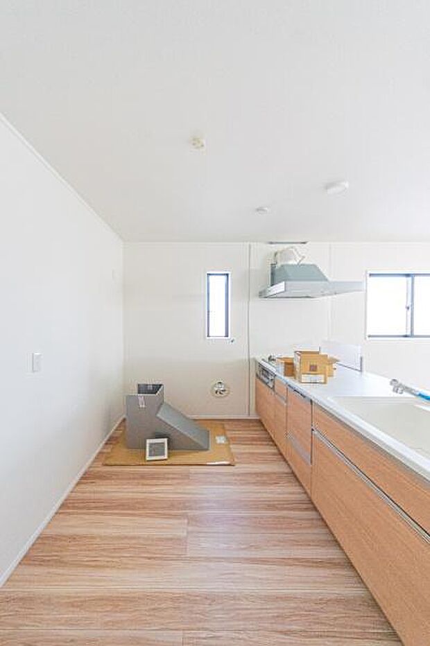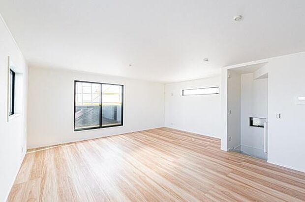 家族がゆったり過ごせる広々リビング。2階リビングは人の目も気にならない寛ぎの住空間です。家事動線良好